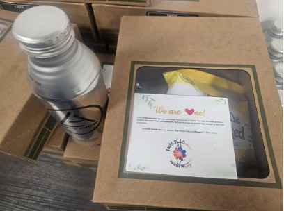 Amber Lamproe, Customer Service Manager for Canteen located in Modesto, CA, sent two large boxes of supplies to the volunteers at the LA Food Bank.